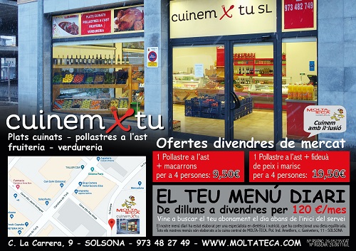 Todos los productos que pueden encontrar en nuestra tienda son platos cocinados en la cocina central de MOLTA-TECA y se bajan a la tienda con una caducidad de exposición de 3 días.
